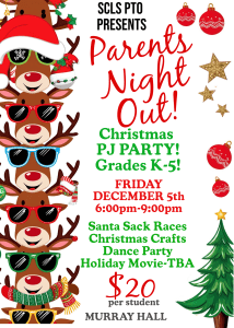 December 5, 6-9pm- Parents Night Out, Murray Hall